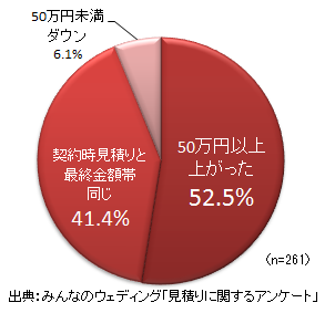 1) 「契約時見積り」より「最終金額」が50万円以上アップ(52.5%)