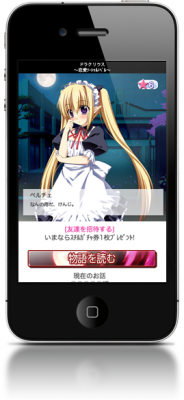また、SNSをアプリケーションプラットフォームとするソーシャルノベルならではの「お友達紹介機能」、「連続ログインボーナス」、「好感度ランキング」などといった要素も盛り込み、新たにプレイ中でも過去のお話を思い出せるよう、簡単な操作で既読のストーリーを美麗なグラフィックとともに再生する機能も追加しました。