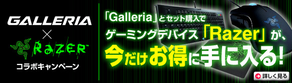 ゲームPC「Galleria」シリーズをお買い上げいただいたお客様に、お好みの「Razer」セットを特別キャンペーン価格でご提供いたします。