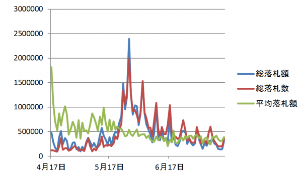 特に総落札額、総落札数は5月27日にピークが来ています。