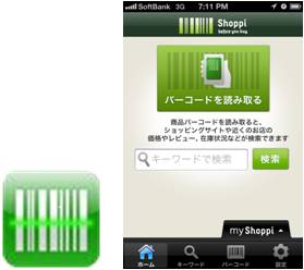 2010 年6 月よりサービス提供している「ショッピッ!」(http://shoppi.jp/)は、手にした商品のバーコードを「ピッ!」と一瞬で読み取ることで、価格などの商品情報を取得し、その場で楽天市場やYahoo!ショッピング、Amazon.com をはじめとした、最大40 のEC サイトや実店舗(登録店舗数:約6 万店舗)から比較・購入ができるスマートフォン向けの次世代お買いものアプリです。