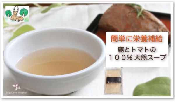 【鹿肉とトマトのスープ】は、身体の弱ってきた老犬へ滋養強壮を考え調理された犬用手作りご飯になります。