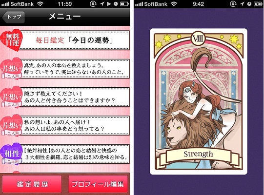 本アプリは、桜倉ケン監修のもと、恋を叶えるために必要なことを様々な角度から占うことができる、恋愛に特化したタロット占いアプリです。毎日の運勢を占うことができる無料メニューと、恋の行方・SEXの相性などを、シチュエーション別により深く占う有料メニューで、あなたの恋と人生を占いで応援します。