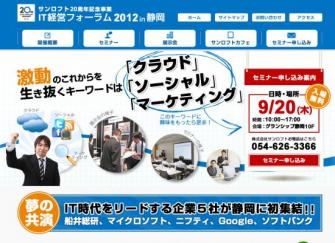 セミナーの講師としてお招きするのは、アップル社のiPhone・iPadを販売して日本のモバイル市場をリードするソフトバンク。Androidを広く携帯メーカーに提供してGoogle Appsという最強クラウドツールを展開するGoogle。パソコン時代の覇者であり、今年ついに万全を期してクラウド・コンピューティングに本格参入するマイクロソフト。国内クラウド企業代表のニフティ。ITに強い経営コンサルタント企業 船井総研。こうしたクラウド・コンピューティング時代をリードする企業が一堂に会して、最新のテクノロジーを経営に活かすためのポイントを語るのは、静岡県内で初めてのことです。また、20社以上のIT関連企業がブースを出展し、話題のサービスを紹介します。