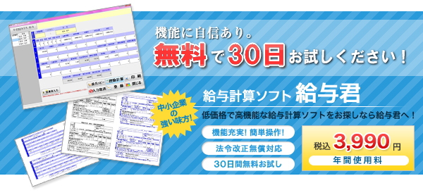 まずは【給与君】使用制限なしの30日無料お試し版でぜひ一度お試しください。