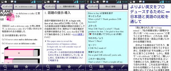 「生きた英語」を意識し、コラムの充実など“読み物としての辞典”を目指している本書ですが、紙面の魅力を余すことなくアプリで表現し、一つのアプリ内で英和・和英の両辞書が引ける充実の内容となっています。