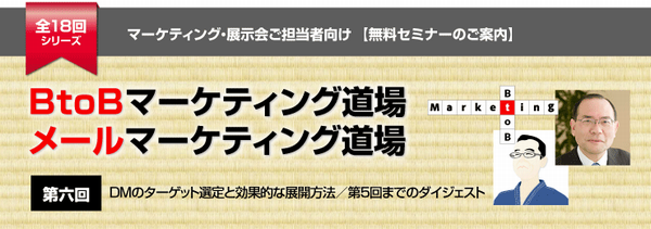 ■第6回目の「BtoBマーケティング道場」のテーマは、「DMのターゲット選定と効果的な展開方法」です。