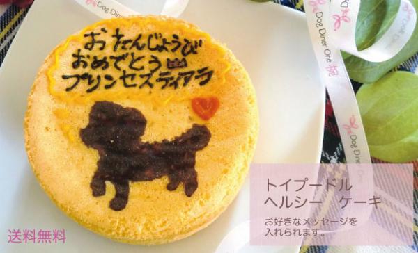 トイプードル ヘルシーケーキは、トイプードルのシルエットが入ったキュートで、低カロリーなケーキになります。