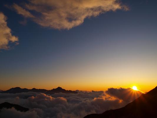 山頂にてご来光を鑑賞後、山小屋にて朝食~朝食後、ホテルグローリアス白馬まで下山~ホテルグローリアス白馬で入浴後、解散(解散は14~15時頃を予定)。