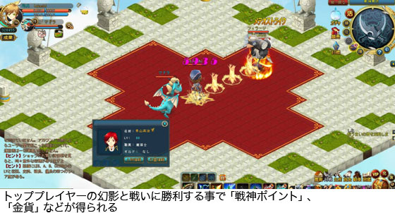 「戦陣ランキング」とは、ゲーム内(ワールド内)にいるユーザー全員が自動で参加となるイベントです。プレイヤーのパラメータデータが「戦神ランキング」に自動登録され、プレイヤーはランキングTOP10に表示されている他のプレイヤーデータと対戦する事で、戦神ポイントが貯めていきます。
