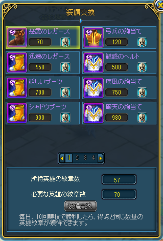 報酬は、「金貨」と「英雄紋章」が得られます。英雄紋章は、英雄商店で使用する事ができ、ここにしかない最強防具を手に入れる事が出来るようになります。