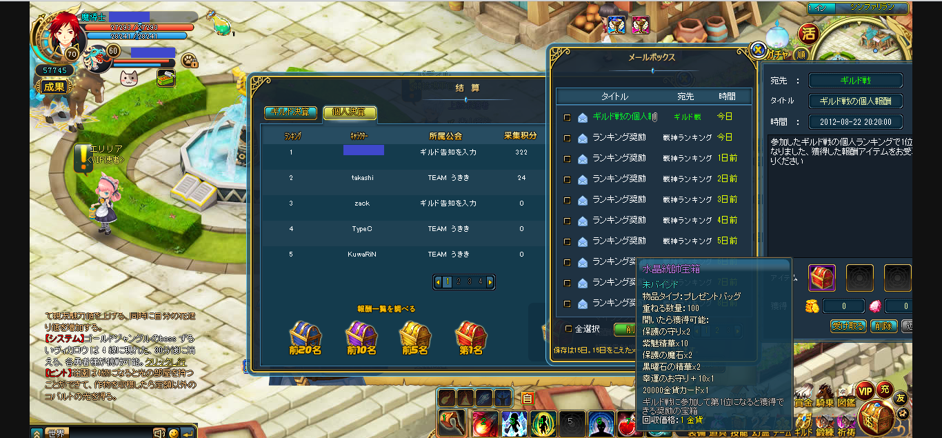さらに、ギルドに所属している事で、特別なイベント「水晶戦」に参加する事が出来ます。