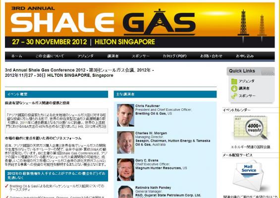 会議:「3rd Annual Shale Gas Conference 2012 第3回シェールガス会議、2012年」
