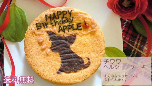 【チワワ用ヘルシーケーキ】は、ホールケーキに可愛いチワワのシルエットがスポンジに焼かれたケーキになります。