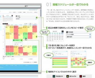 カテゴリー別色分けで、関連レッスンや空き状況が一目で確認できます。
