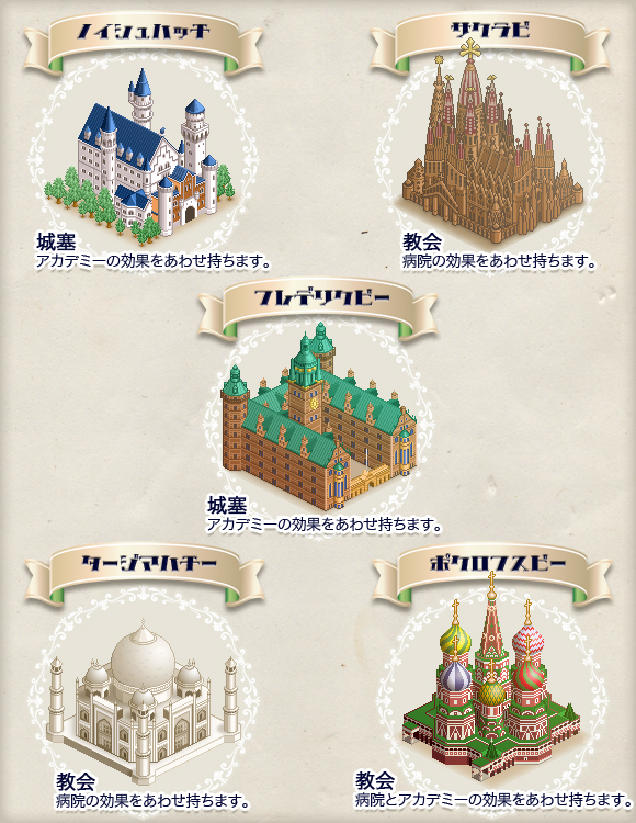 地主となってくださった方へ、期間限定の報奨です!ドット・イースト大陸において、様々な役割を持つ建築物達。その建築物達の効果をあわせ持っているのが【お城】です。建てるだけで街を活性化させ、鮮やかに彩る美麗なお城の設計図を期間限定で販売いたします。