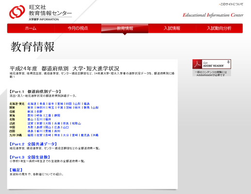 資料は、大学進学情報誌『螢雪時代』の編集チームが直接運営する「教育情報センターHP」(http://eic.obunsha.co.jp/)に掲載しています。これは、主に高校の先生や大学の教職員の方々を対象とした教育情報サイトです。