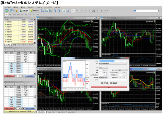 「Meta Trader5」は、ロシアのメタクォーツ社によって開発された世界的にも評価が高いツールで、最新バージョンの「Meta Trader5」は、弊社が国内初の採用となります。大証FXを皮切りに、日経225先物、海外デリバティブ取引、商品先物取引に順次対応の予定です。