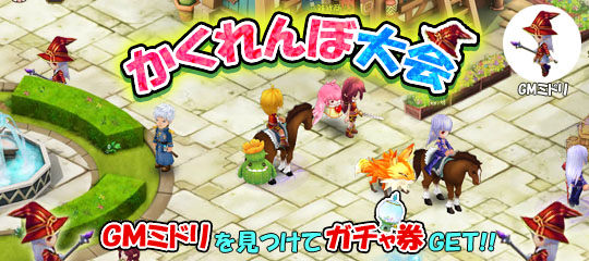 『キミとつながるRPG 才色のフェアリア』には、プレイヤー様からいただいた質問を受け付けるGM(ゲームマスター)のミドリが存在します。今回は、このシンフォニアの広大なマップを利用して、かくれんぼ大会を実施いたします。そして、見事GMミドリを見つけたプレイヤー様には『1回ガチャ券』1枚をプレゼントいたします。