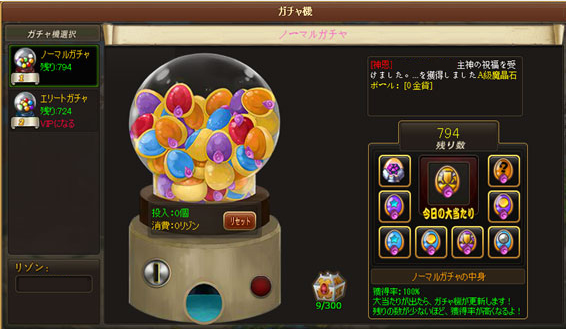 この「リゾン」を使用することで、ゲーム攻略に役立つアイテムを入手できる【ガチャ】を使用できるようになります。