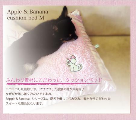 【Apple & Banana クッションベッド】は、優しい肌触りにトコトンこだわった犬に優しいベッドになあります。