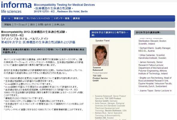 株式会社グローバル インフォメーションでは、皆様の利便性を図る為に、日本語、韓国語、中国語で「Biocompatibility Testing for Medical Devices-医療機器の生体適合性試験-」の情報を提供するとともに、学会の参加のお申し込みを承っております。