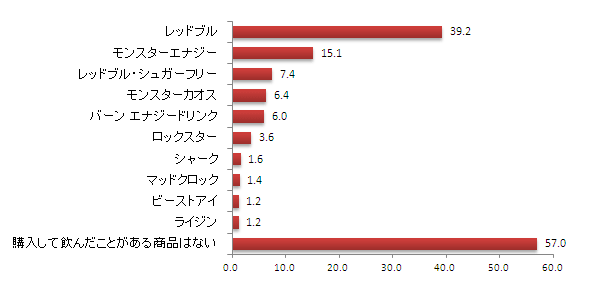 ■エナジードリンクを知っている人のうち、いずれかの商品を購入して飲んだことのある人は43.0%