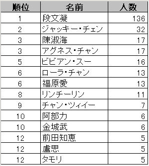 総括 : 教育番組に出演中の有名人が多くあげられた。中でも1位となった段文凝さんには「日本語を勉強中ということで、教え合いながらお互い楽しく勉強できそう」「今まさに日本語という言語を勉強中で、言語習得中の人にしかわからないつらさ、うれしさ、喜びを共有できる」といった、互いに学び合う姿勢への共感が目立った。