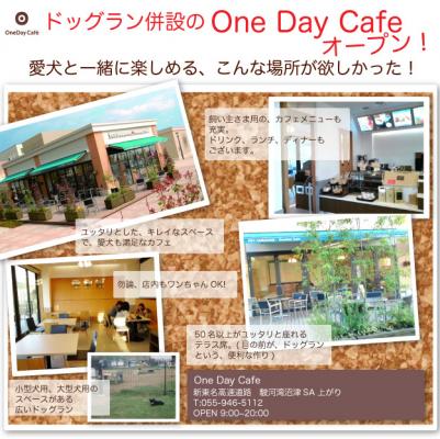One Day Cafeは、犬と飼い主に優しいをモットーに作られた、ドッグラン併設のカフェ。