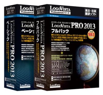 同時発売の上位モデル「LogoVista PRO 2013 フルパック」では、翻訳辞書の総語数が983万語(647万語+著名なビジネスシーンで使用される専門辞書合計336 万語(英日・日英各8 分野))と業界最大の辞書語数を搭載し、翻訳業務を強力にバックアップします。