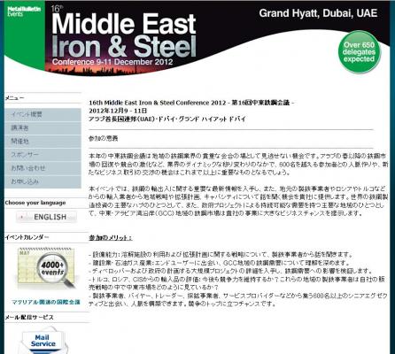 会議:「16th Middle East Iron & Steel Conference 2012 - 第16回中東鉄鋼会議 -」
