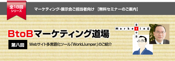 ■第8回目の「BtoBマーケティング道場」のテーマは、「Webサイト多言語化ツール『WorldJumper』」です。