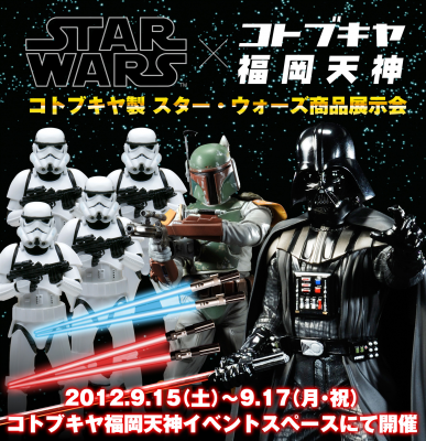 今年8月末にOPENした「コトブキヤ福岡天神」イベントスペース・コトブキヤベース・福岡天神(福岡県福岡市中央区天神2-11-2 ソラリアステージ5F)にてスター・ウォーズイベントを開催!コトブキヤから発売されているスター・ウォーズ関連商品の一斉展示に加え、フィギュアの他、お箸やネクタイ等の生活雑貨、発売前の商品サンプルの展示も予定。更に、コトブキヤが過去に出展した海外SW関連イベントの写真展示も行います。