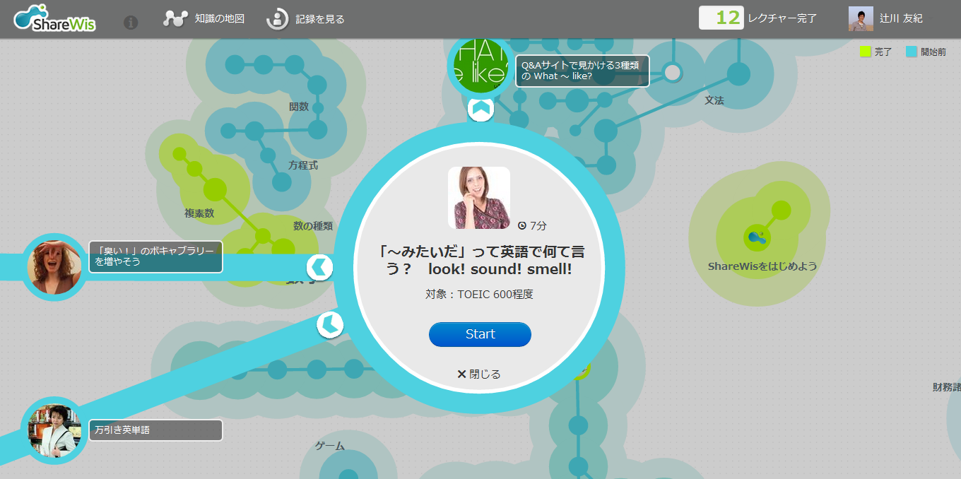 弊社は、動画や4択問題等から成る、短い学習コンテンツ同士がネットワーク状につながった「知識の地図」を特徴とする、社会人向けの無料の学習サイトShareWis(URL: http://share-wis.com)を運営しております。