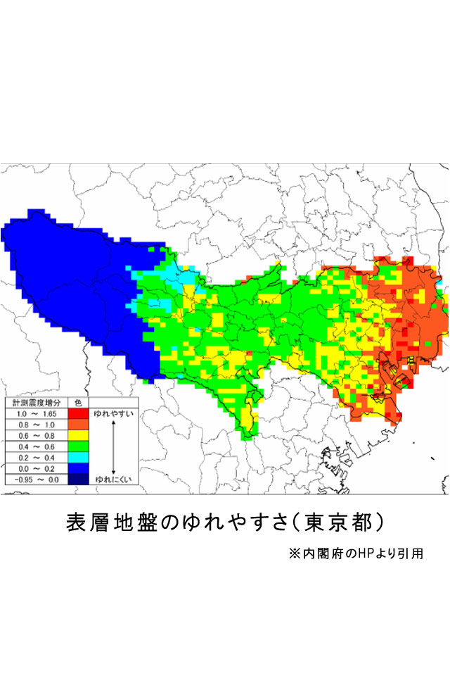 各場所別に地震発生時に起こりうること、被害予測を解説。東京・神奈川・埼玉・千葉県、各都県別のデータを提示。