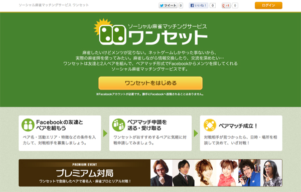 シーサーでは本システムを利用して、麻雀の対戦相手を募集することができるソーシャル麻雀マッチングサービス「ワンセット」をリリースしました。