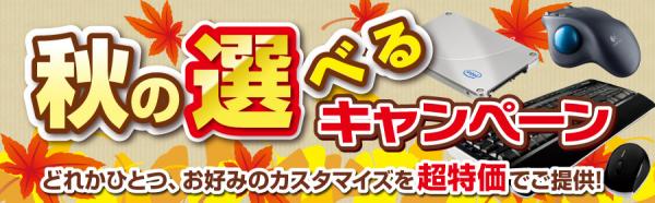株式会社ドスパラ(取締役社長: 畑谷浩治、本社 : 東京都千代田区)は、全国21店舗の「ドスパラ」およびドスパラ通販サイトにおいて、パソコンのパワーアップアイテムをお得にお求めいただける「秋の選べるキャンペーン」 を、2012年9月23日(日)までの期間限定で開始いたしました。