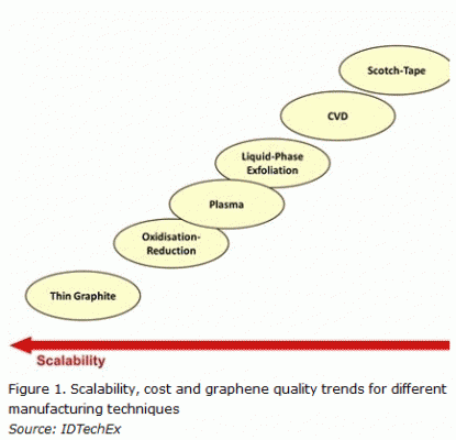 米国調査会社IDTechEx社の調査レポート「グラフェン市場分析 2013-2018年:技術、市場、関連企業-Graphene:Analysis of Technology, Markets and Players 2013-2018」は、このような誇大広告によらず、この市場の適切な市場参加者へのインタビューと、追跡調査や解釈によって得た世界の発展状況などの、IDTechEx社の詳細な情報をもとに分析を行っている。IDTechEx社は、グラフェン市場は2018年に1億ドルとなるだろうと予測している。
