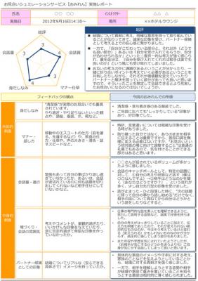 (3)後日、外見やマナー、会話の中身、結婚観の具体性など、交際カップルや成婚カップルなどから当社が分析している“お見合い時に重視される5つの観点”の元、実際に会話されたやり取りを客観評価したレポートを送付する。