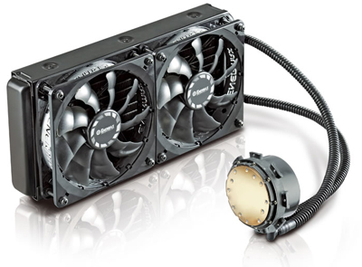 ELC240は、240mmラジエータを採用したTDP250W+対応、ハイエンド水冷一体型ユニットの水冷CPUクーラーです。最新のIntel&AMD CPUソケットに対応したユニバーサルデザインを採用しています。特許を取得したQSC technology、低ノイズで滑らかな回転を実現するセラミックベアリングポンプ、クーラント液の蒸発が限りなく0%に近いフッ素樹脂チューブ、付属のファンはPWM対応、Twister Bearingを採用したT.B.Silenceタイプの120mm超静音ファンを2基標準採用し、800~2200rpmの回転範囲を3段階で切り替え可能なスイッチ搭載しています。圧倒的な冷却性能と低ノイズ運用を実現します。
