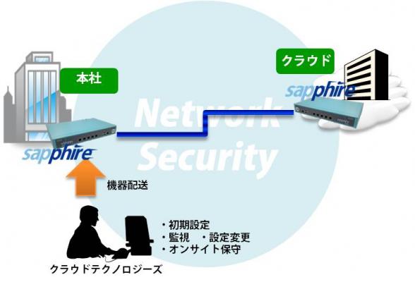 フ ルマネージドVPN「sapphire(サファイア)」サービスは、VPN機能に特化したsapphire(サファイア)アプライアンスの運用・監視、オ ンサイト保守までを月額料金でご利用頂けるサービスです。VPN機器の購入は不要であり、設定の変更や障害発生時の対応に至るまで、お客様側に専門エンジ ニアがいなくても、手間を掛けずに全てアウトソース型でサービス提供致します。