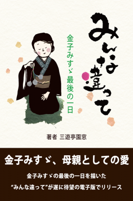 本作は、幼い娘を残し、26歳で自ら命を絶った童謡詩人金子みすゞの最後の一日を描いた三遊亭圓窓の創作落語「みんな違って」を切り絵絵本にしたもの。みすゞの心の奥底までを掘り起こした圓窓師匠の落語「みんな違って」は、母親としての愛を訴え、読む者の胸に迫ります。