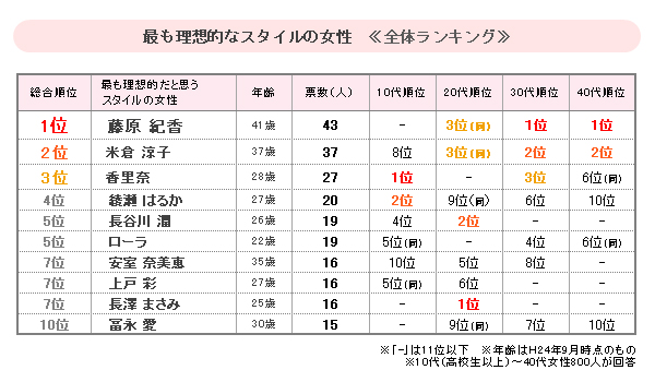 ■『あなたが最も理想的だと思うスタイルの女性』 として1人だけ名前をあげてもらったところ、