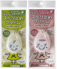 オフィスの定番アイテム・紙めくり用品の便利さを、暮らしの中のお悩み解決に役立てたい。そんな思いから「メクールポケット」は開発されました。携帯に便利なチェーンとクリップ付きで、バッグに提げたり、書類や本に挟んだりと、いつでもどこでもさっと指先を潤すことができます。クリームは、指先にうれしい「アロエエキス配合」(グリーン)と「コラーゲン配合」(ピンク)の2種類。メーカー希望小売価格(税込)は各210円です。