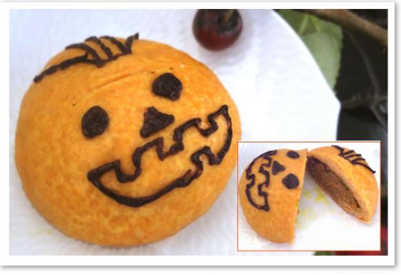 ・ハロウィーンのカボチャのお化けの型をした、肉まん。