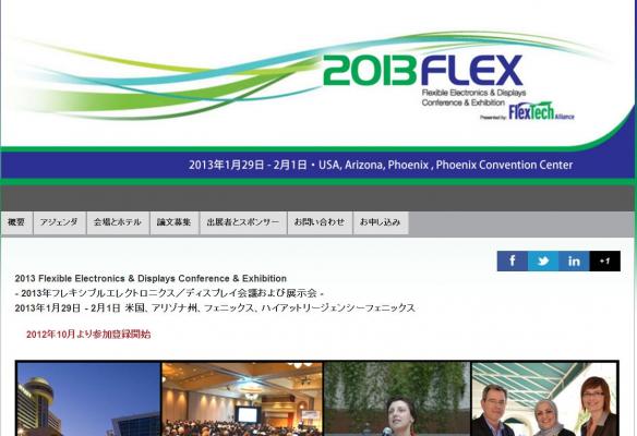 会議:「2013 Flexible Electronics & Displays Conference & Exhibition- 2013年フレキシブルエレクトロニクス/ディスプレイ会議および展示会-」