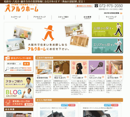 この度の『アルクホーム』様のwebサイトは、"大阪市で住まいをお探しならアルクホームにお任せ下さい。"をコンセプトに作成致しました。