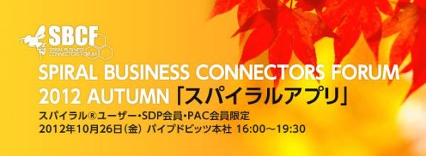 情報資産プラットフォームを活用したソリューションを提供する株式会社パイプドビッツ(本社:東京都港区 代表取締役社長 CEO:佐谷宣昭 証券コード3831、以下「パイプドビッツ」)は、10月26日(金)16時より、「スパイラルアプリ」をテーマに「スパイラル ビジネスコネクターズフォーラム(SBCF)2012秋」を開催しますので、お知らせいたします。