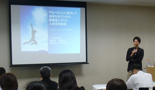 角川は、三三のユニークな人事システム・施策が「どのような背景、プロセス、哲学で生まれてきたのか」について講演いたしました。
