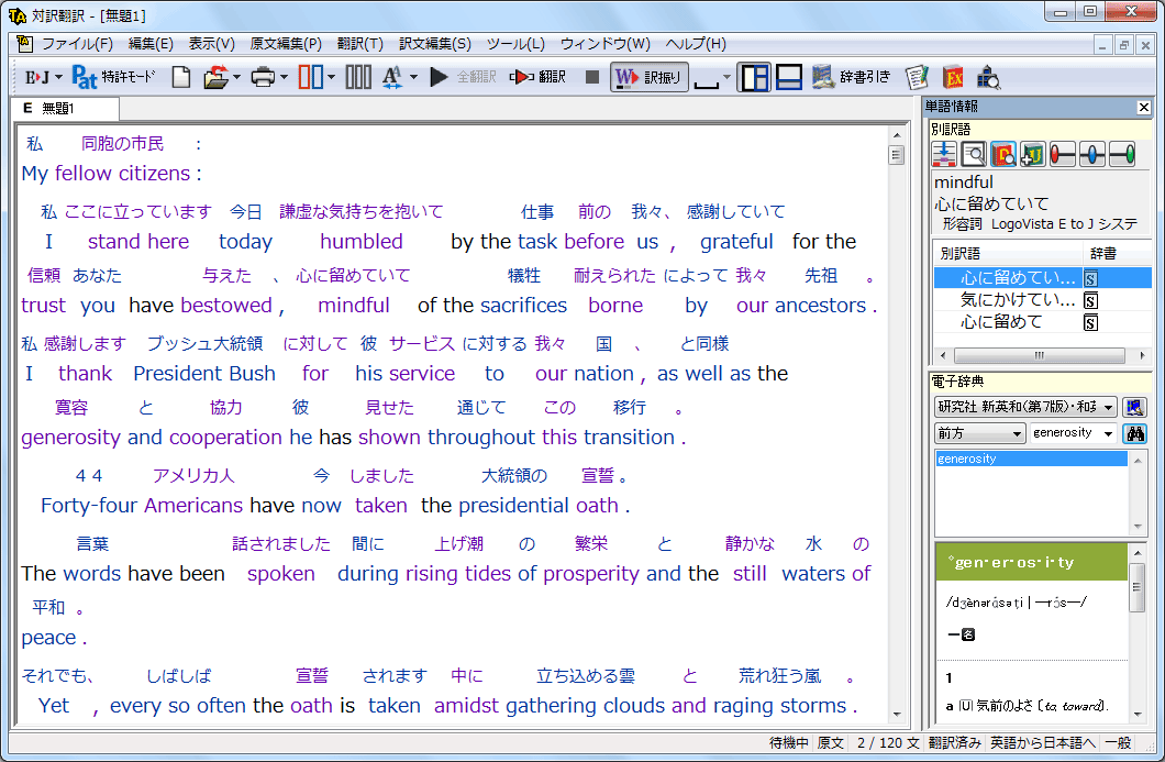 「優れた構文解析力」「精密な意味分析による適切な訳し分け」